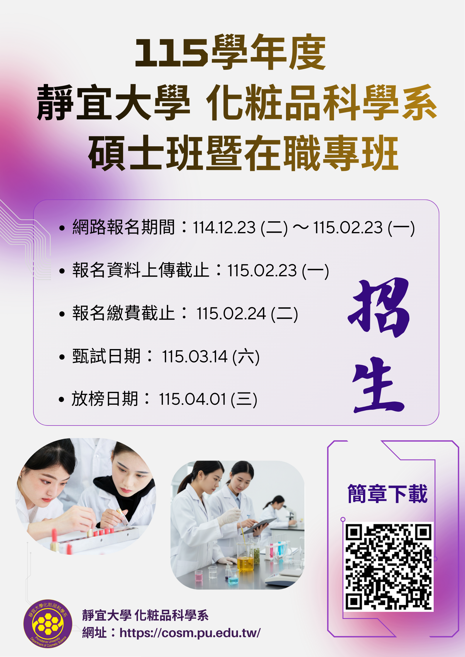 115學年度碩士班暨在職專班入學招生